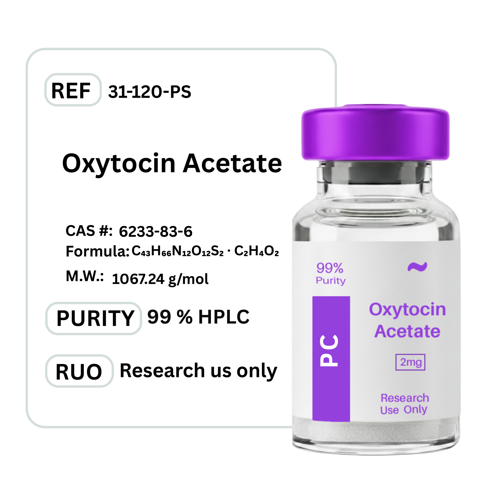 Oxytocin Acetate constitutes a laboratory-grade synthetic peptide that replicates the natural human neuropeptide oxytocin. Provided in acetate salt form, it is intended for use in controlled experimental research. Studies commonly examine its involvement in neuromodulation, smooth muscle activity, social interaction pathways, and hormonal regulation. Research centers on its interaction with oxytocin receptors within both central and peripheral tissues under defined experimental conditions.